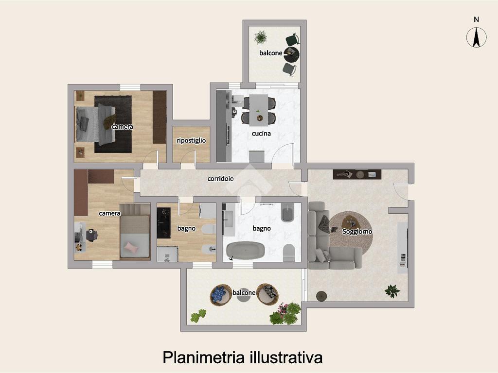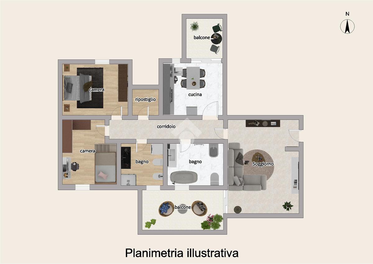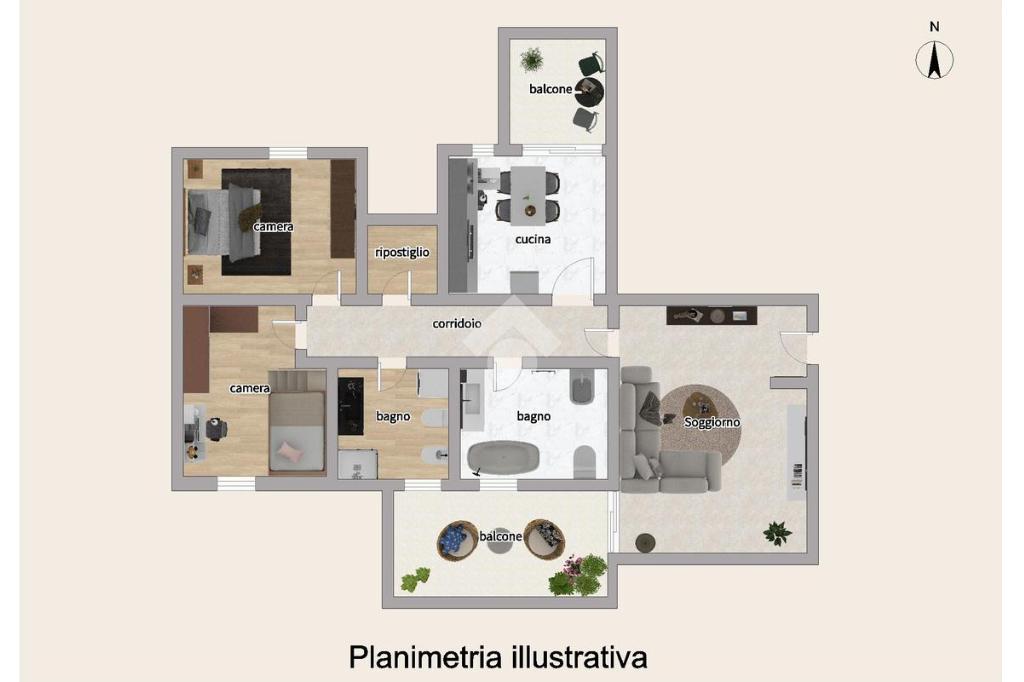 L'immobile è composto da ingresso su un accogliente soggiorno con affaccio sul primo balcone verandato, proseguendo verso il corridoio si accede alla cucina abitabile con affaccio ad un secondo balcone anch'esso verandato.