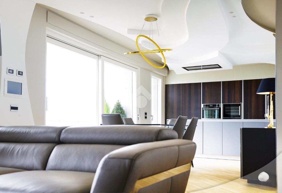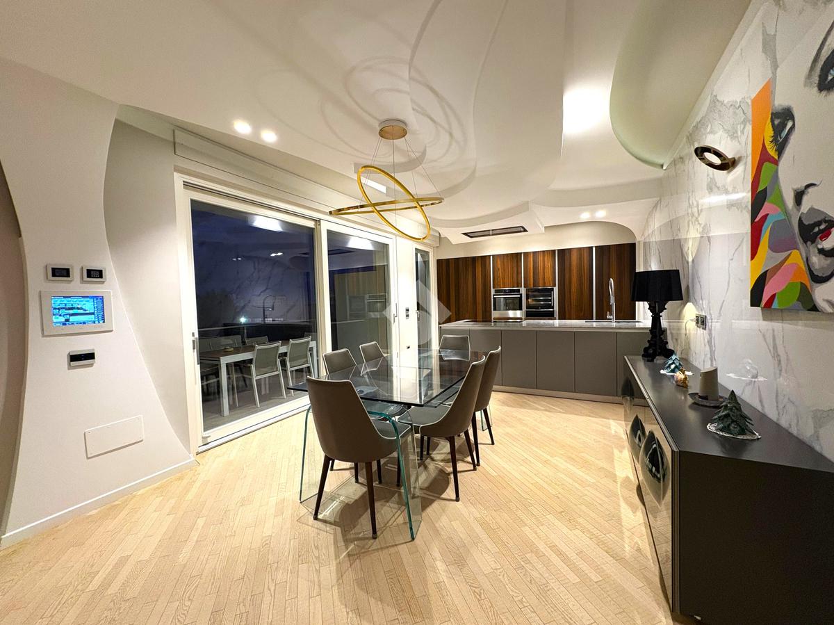 L'appartamento è fornito di un impianto di allarme e videosorveglianza che possono essere gestiti tramite un pannello di controllo centralizzato. Questo sistema consente anche la gestione della domotica, del riscaldamento/raffreddamento a pavimento e della filodiffusione audio, presente in ogni ambiente per un'esperienza di vita confortevole e tecnologicamente avanzata.
