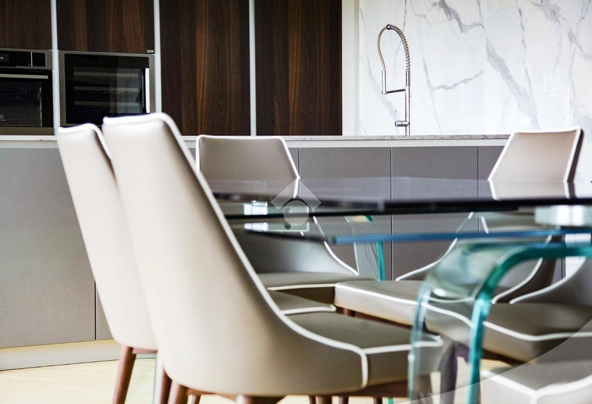 Un luminoso open space integra armoniosamente la zona living con una moderna cucina dotata di penisola, il tutto con affaccio su una veranda riservata, ideale per pranzi all'aperto.