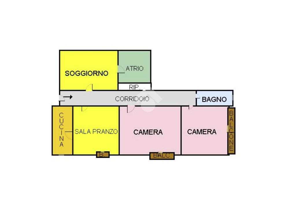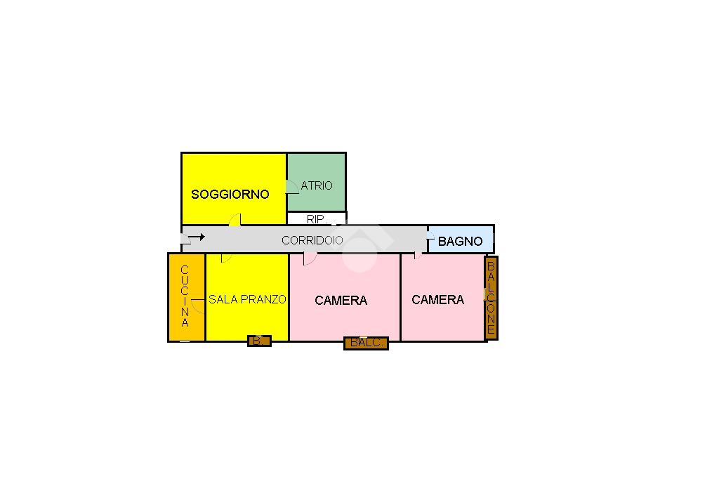 L'immobile si sviluppa su una superfice di circa 100mq composto dalla zona giorno con tinello e cucinino, soggiorno separato con accesso diretto in un atrio interno.
