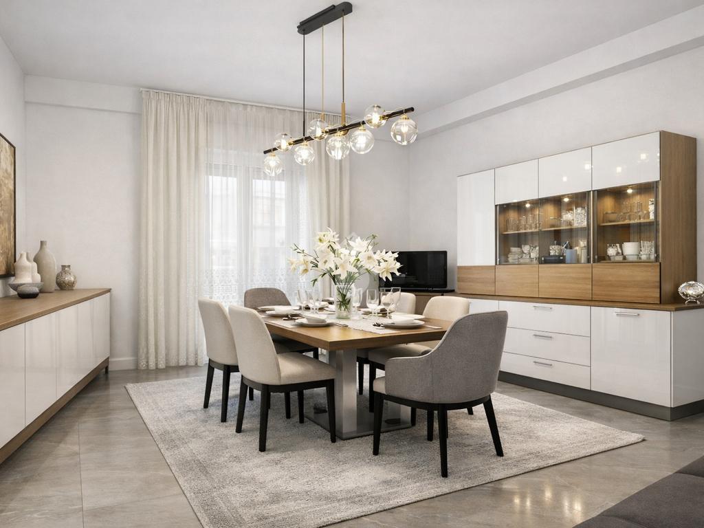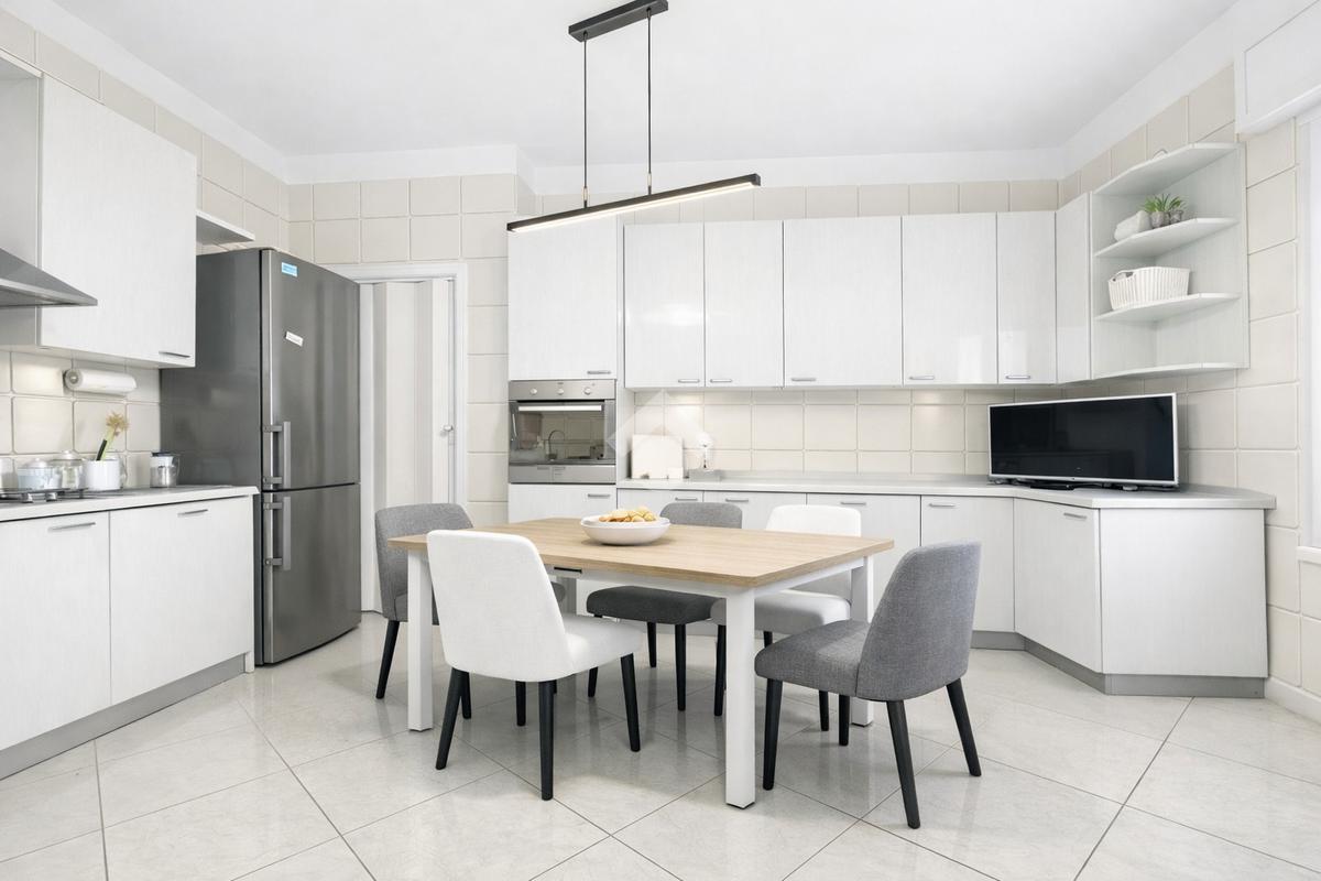 La zona giorno si sviluppa alla fine del corridoio composta da cucina abitabile, dotata di dispensa, e da sala da pranzo adiacente servita da un balcone.