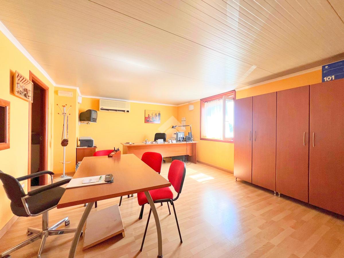 La soluzione si sviluppa su due piani con spazi luminosi e versatili adatti a diverse esigenze operative: