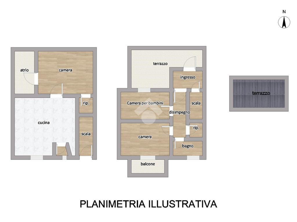 Attraverso una scala interna si accede al primo piano, dedicato alla zona notte, dove troviamo un'ampia camera da letto, una cameretta per bambini e un bagno finestrato dotato di vasca. Completa il piano un terrazzo interno vivibile.