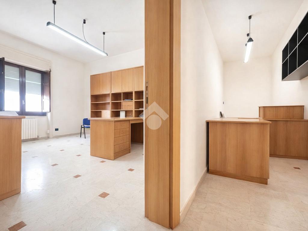 La doppia sala d'attesa centrale, pensata per una gestione funzionale degli spazi, separa in modo ottimale gli ambienti, rendendo l'immobile particolarmente adatto a studi associati o attività poliambulatoriali.